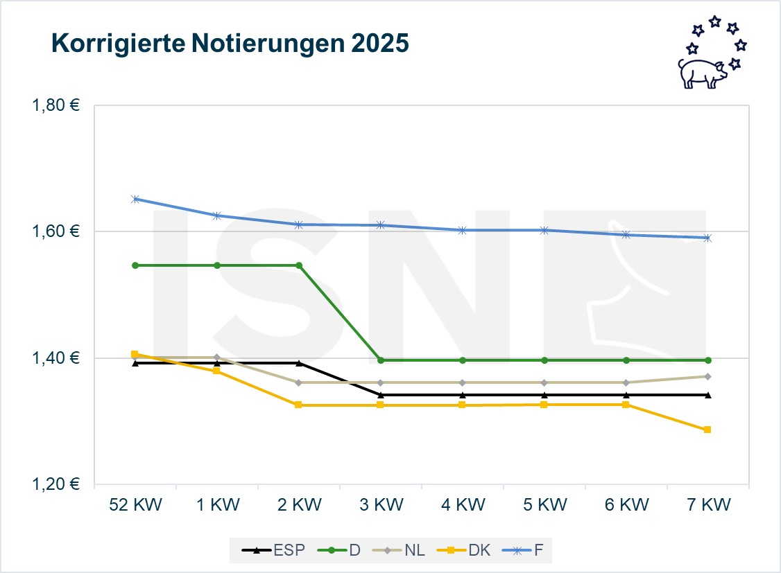 Der europäische Schlachtschweinemarkt zeigt sich in der laufenden Schlachtwoche uneinheitlich. Während sich der Markt in einigen Ländern zunehmend stabilisiert, geben die Notierungen in Dänemark, Frankreich und Italien moderat nach.