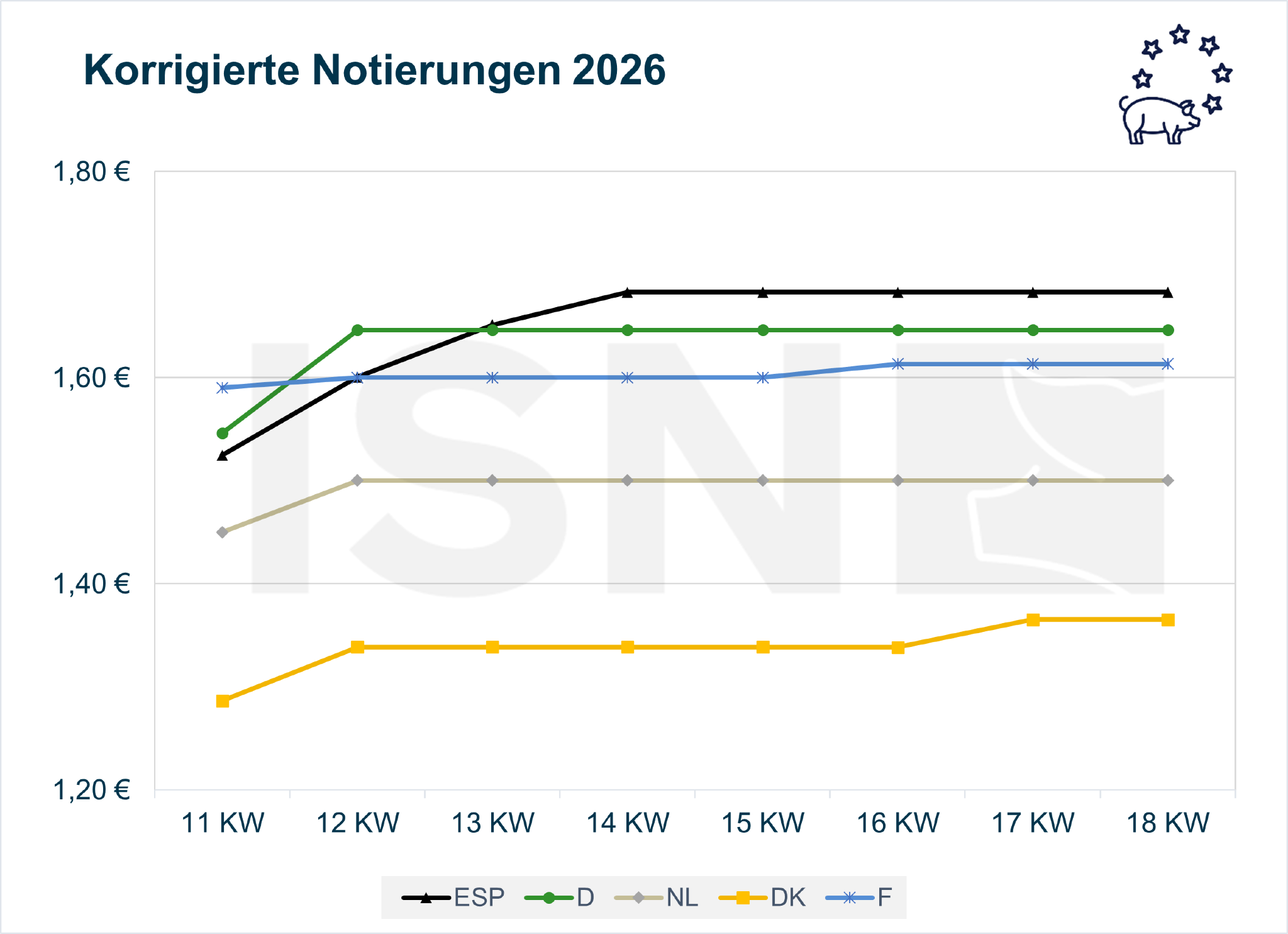 Der europäische Schlachtschweinemarkt präsentiert sich in der laufenden Schlachtwoche weiter insgesamt ausgeglichen und die Notierungen bewegen sich seitwärts. Der italienische Markt legt unterdessen leicht zu, während der Großteil der Notierungen auf die erforderlichen Nachfrageimpulse wartet.