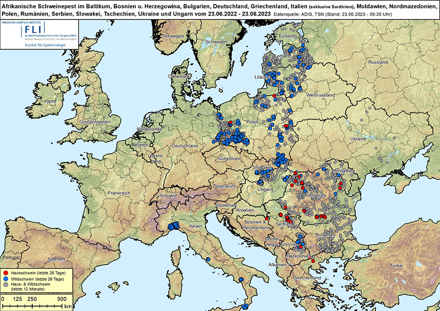 In Italien hat es seit dem 1. Juli 2022 insgesamt 706 nachgewiesene ASP-Ausbrüche bei Wildschweinen und zwei bei Nutztieren gegeben. Diese verteilten sich auf die Regionen Piemont und Ligurien im Nordwesten, Latium in der Nähe von Rom sowie Kalabrien und Kampanien im Süden Italiens. Ende Mai hatte der Vorsitzende der Sektion Schwein vom nationalen Fonds für sanitäre und umweltbedingte Risiken (FMSE) in Frankreich, Jeff Trébaol, gegenüber Medien beklagt, dass die italienischen Behörden bei der ASP-Bekämpfung überfordert" seien. Es fehle an finanziellen und personellen Mitteln. Zudem gebe es auf behördlicher Ebene Probleme zwischen den nationalen und den regionalen Instanzen.