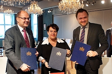 Bundeslandwirtschaftsminister Schmidt und seine Amtskollegen Sharon Dijksma und Dan Jørgensen nach der Unterzeichnung der Gemeinsamen Erklärung, Quelle: Dutch Ministry of Economic Affairs