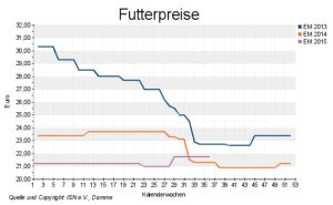 Die im Marktticker der ISN erfassten Preise geben die Preisentwicklung ausgewählter Futterkomponenten und Futtermischungen wieder. Wenn auch nicht für jede Region ein eigener Preis dargestellt werden kann, so kann doch von der dargestellten Entwicklung auf den eigenen Preis abgeleitet werden.