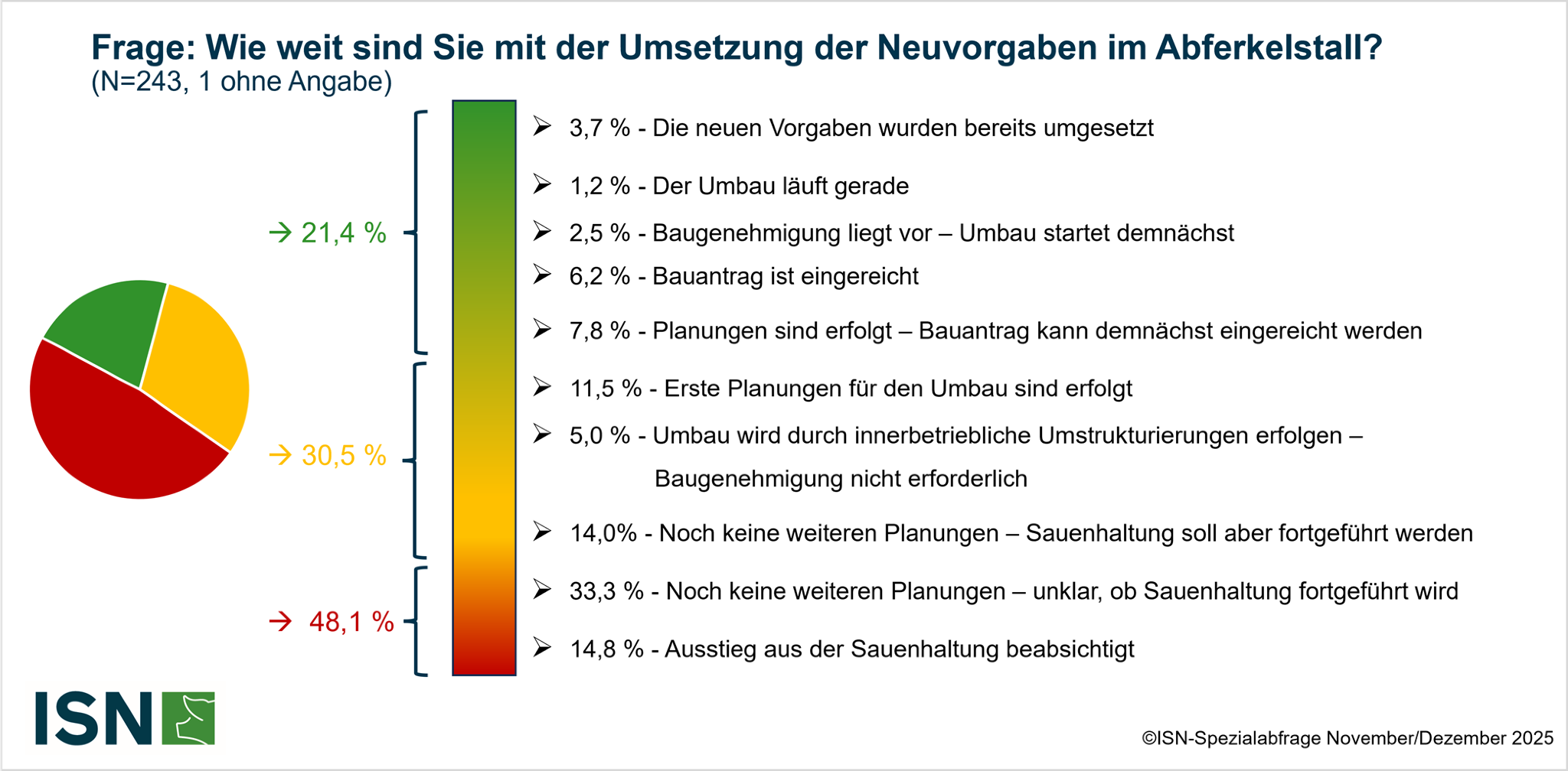 Stand beim Umbau des Abferkelstalls bundesweit - ISN-Spezialabfrage zur Sauenhaltung Nov/Dez 2025 ©ISN