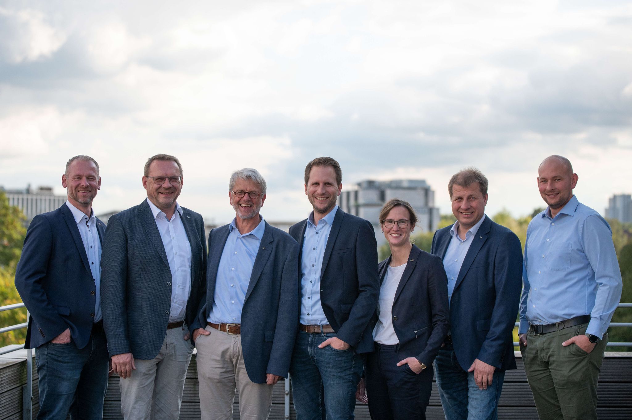 Freuen sich über einen erfolgreichen Start der AGRAVIS Nutztier GmbH (v. li.): Matthias Kutsche (Leiter Geschäftsfeld Rind), Bernhard Walgern (Leiter Geschäftsfeld Schwein), Bernd Schmitz (Geschäftsführer), Valentin Schulze Spüntrup (Leiter Geschäftsfeld Geflügel), Dr. Jana Denißen (Leiterin Geschäftsfeld Zentrales Produktmanagement und Marketing), Dieter Jürgens (Leiter Geschäftsfeld B2B, International, Online) und Andreas Bußmann-Dopp (Leiter Geschäftsfeld Einkauf und Abwicklung).