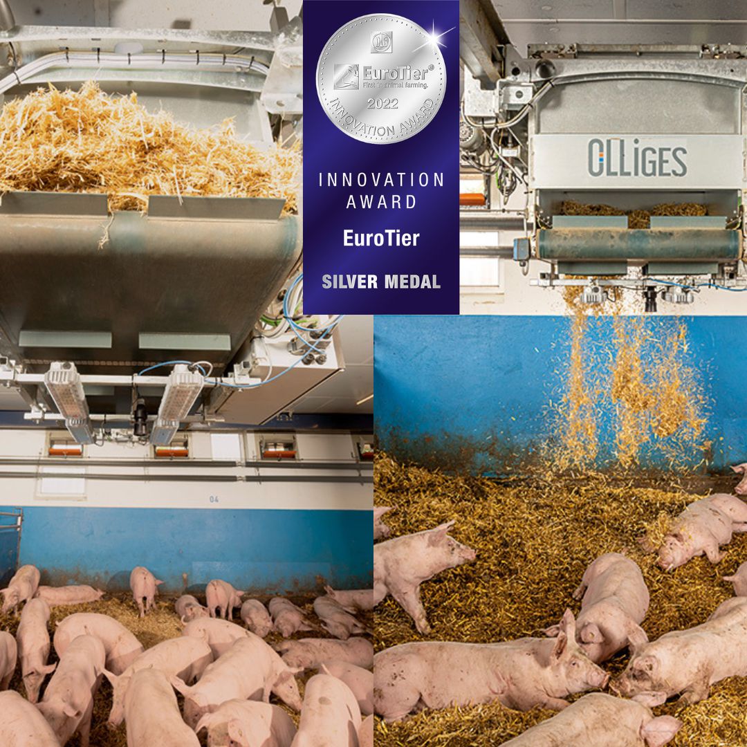 Einstreu in Schweinebuchten gewinnt stetig an Bedeutung – nicht zuletzt aus Tierwohl-Gründen. Daher hat Big Dutchman mit OlliGES einen Einstreuroboter entwickelt, der Schweinehaltern die anstrengende und zeitaufwändige Arbeit des Einstreuens abnimmt. Das neue System ermittelt eigenständig, wo und wie viel Einstreu eingebracht werden muss und sorgt automatisch für eine optimale Verteilung. Der Roboter kann zudem ein automatisiertes Einstreuen an vorab definierten Stellen übernehmen. Im Vorfeld der Messe hat eine von der Deutschen Landwirtschafts-Gesellschaft (DLG) eingesetzte Expertenkommission OlliGES mit einer Innovations-Silbermedaille ausgezeichnet.